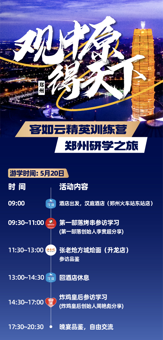 5月20日,客如云精英訓練營——鄭州研學之旅,在河南鄭州完美落下帷幕。鄭州站是客如云2024年度渠道服務商精英訓練營研學之旅的首站,據了解,本次鄭州研學之旅以“觀中原,得天下”為主題,不僅為表現優異的客如云渠道服務商及渠道經理提供寶貴的學習機會,親身探訪知名連鎖餐飲品牌第一部落烤串、炸雞皇后,近距離學習產品創新、服務升級及品牌建設等方面的先進經驗,更展現了客如云在推動數智化餐飲SaaS服務高質量發展方面的決心與實力。