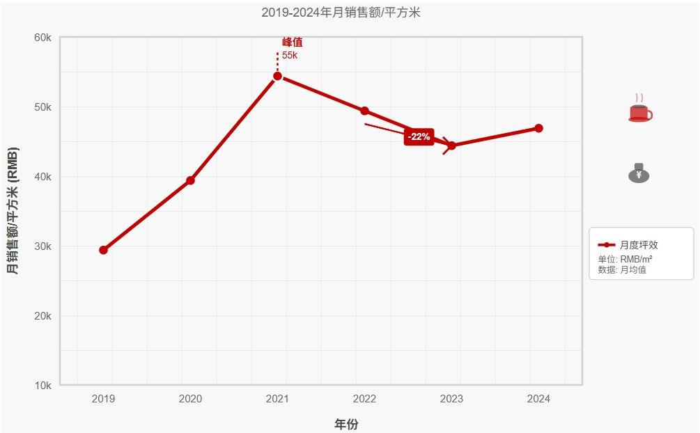 據調查顯示,過去三年中門店數量在不斷擴展,但門店坪效在下降,2023年新茶飲門店坪效同比下降22%,部分加盟商回本從 1.5 年延至 3 年,行業整體毛利率跌破 50% 警戒線。由此可見,過度擴張導致單店盈利下滑、加盟商回本周期拉長,同品牌門店內卷加劇,使行業普遍面臨同店銷售增長壓力。